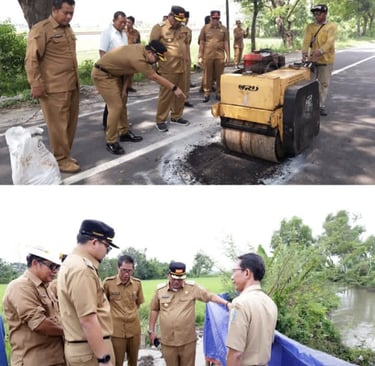 ARTIKATA, NGANJUK– Pada hari pertama bulan Ramadan, Bupati dan Wakil Bupati Nganjuk, Kang Marhaen dan Mas Handy, melakukan blusukan untuk meninjau permasalahan infrastruktur dan bencana alam di beberapa titik di wilayah Nganjuk. Kegiatan ini difokuskan pada perbaikan jalan rusak dan pemberian bantuan sosial kepada warga yang terdampak bencana.